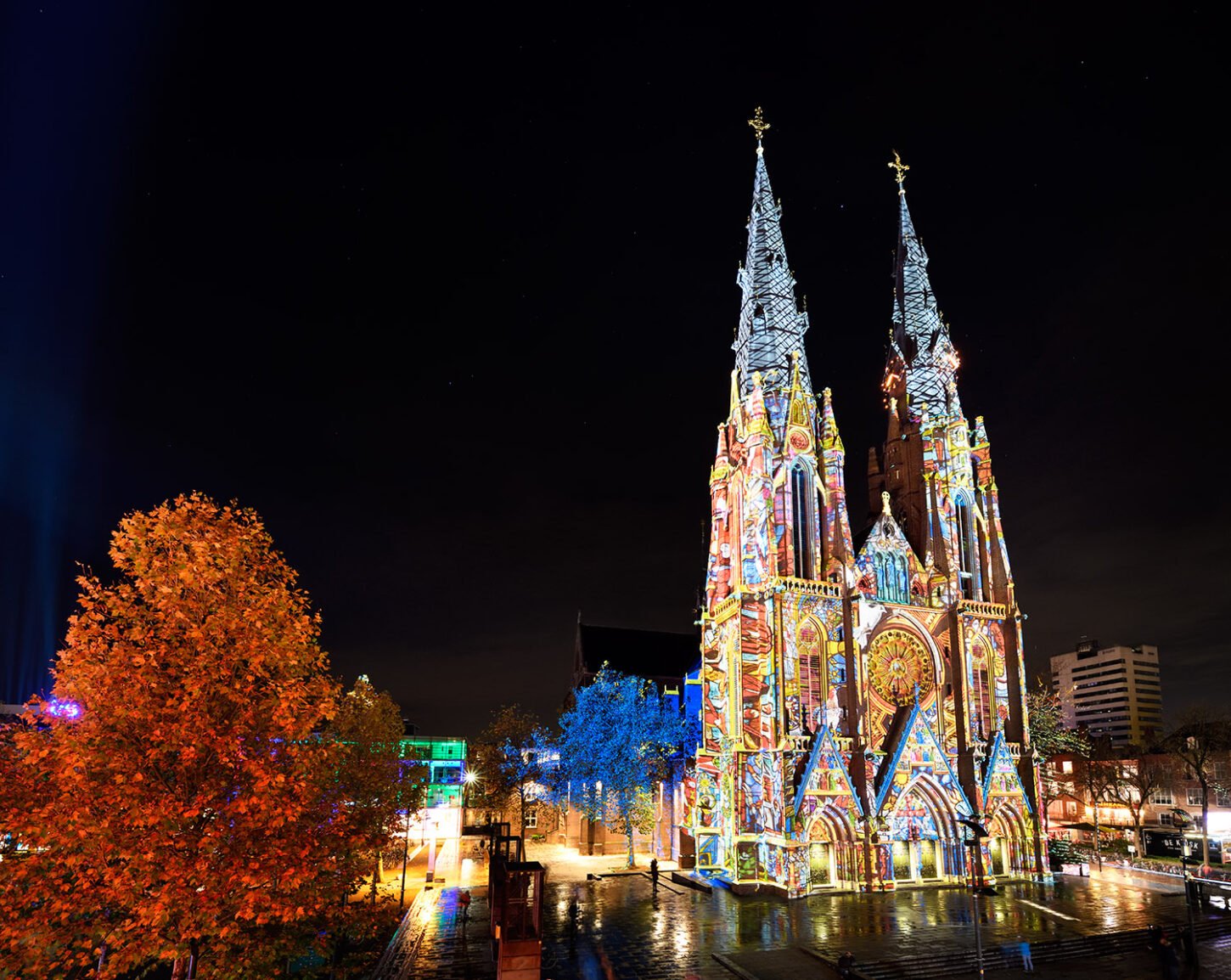 B e l e e f G L O W , h e t g r a t i s l i c h t f e s t i v a l d a t E i n d h o v e n e n d e r e g i o t r a n s f o r m e e r t i n e e n d e c o r v o l l i c h t k u n s t d a t m e n s e n s a m e n b r e n g t . V i e r m e t o n s d e 2 0 e e d i t i e v a n 8 t / m 1 5 n o v e m b e r .