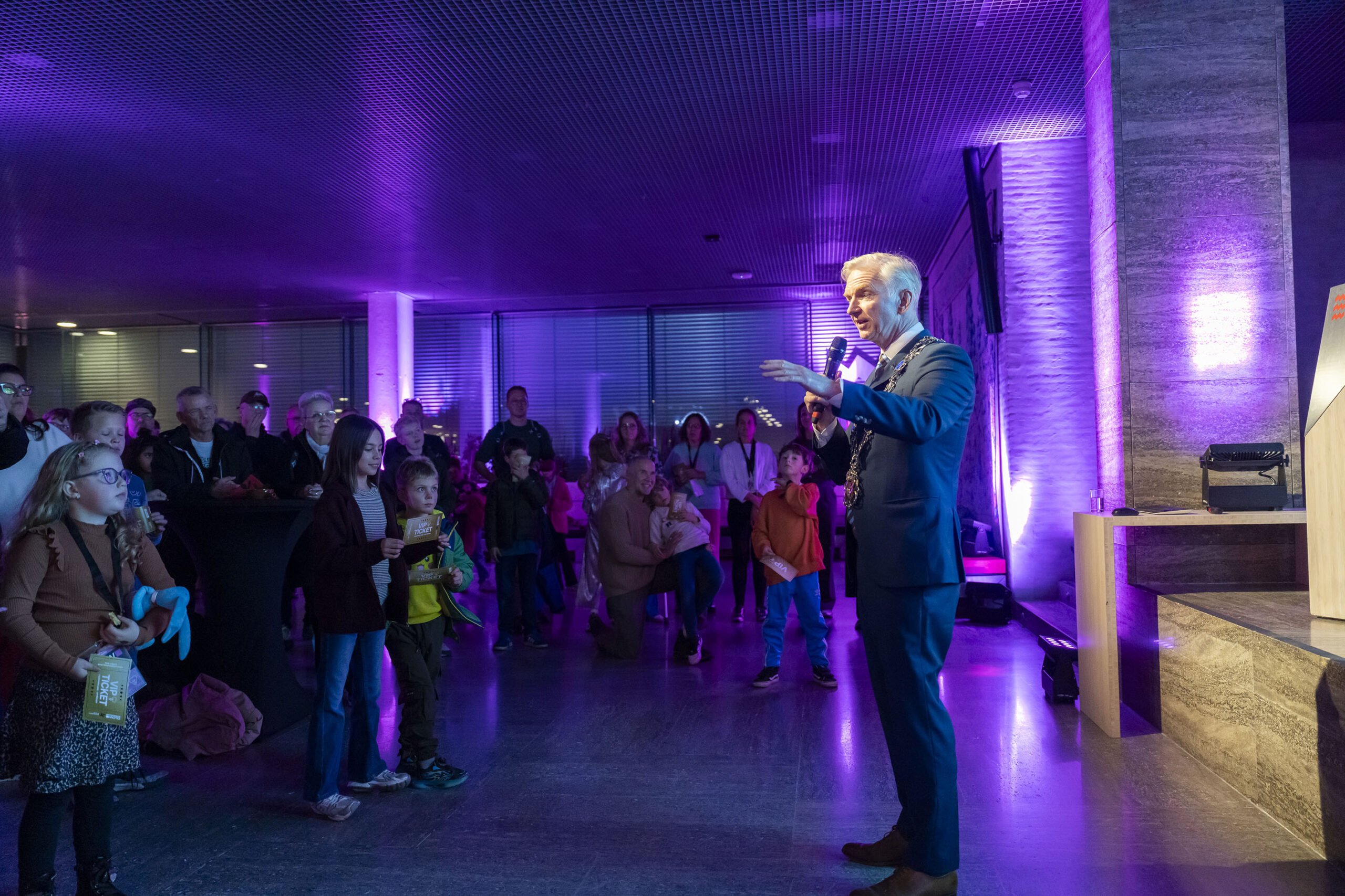 Alderman Robert Strijk welcomed the children at the City Hall, where, upon their return, they were the very first to admire the anniversary project “The First GLOW”. They also received a small gift from the City of Eindhoven — a Lego set of the City Hall — and a festive treat, rounding off an evening they will remember for a long time.