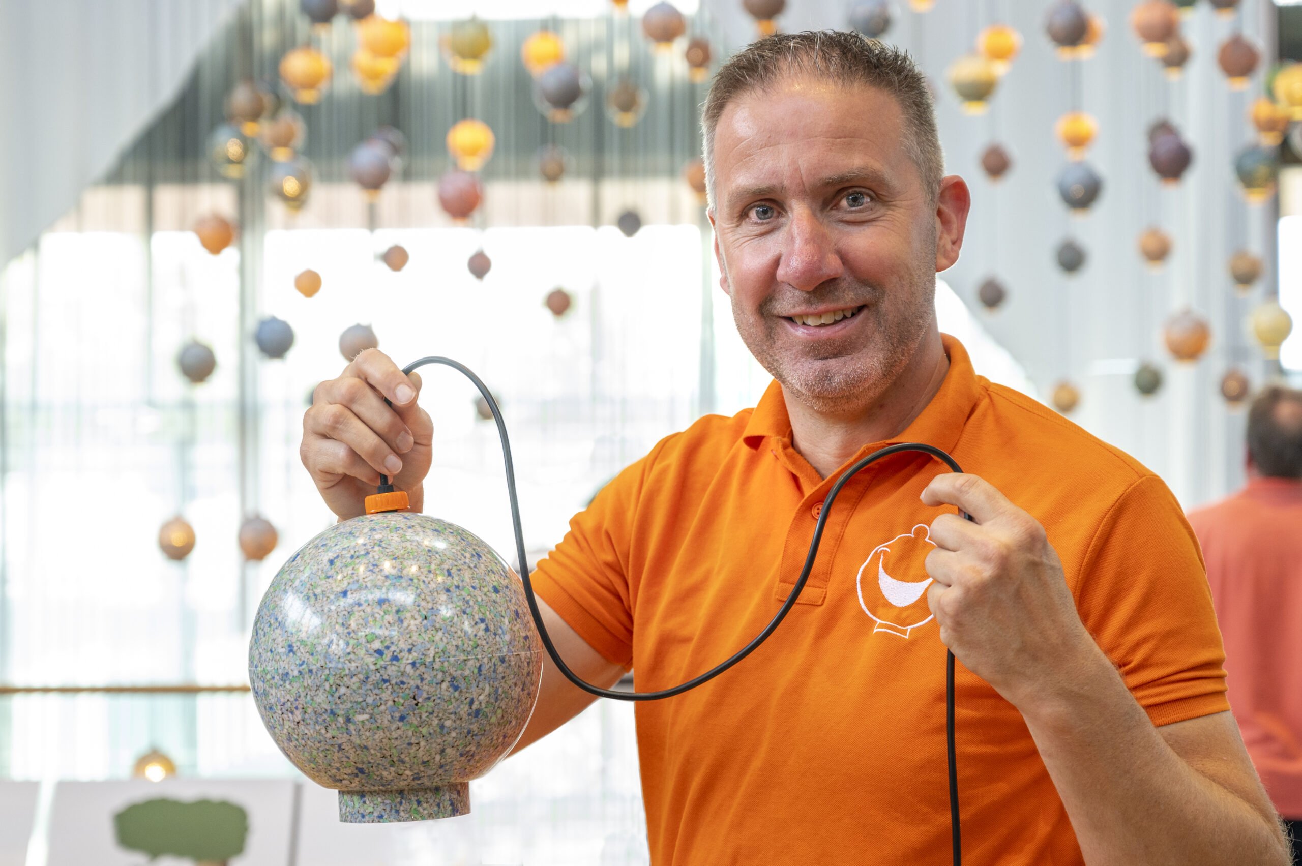 Rolph Adriaansen, born in Woensdrecht, began his career as a business economist and made the leap to entrepreneurship in 2016 with vanPetnaarPret. He launched this creative initiative to teach children about recycling and sustainability in a playful way — using deposit-free PET bottles. The project grew into a success, with a highlight being the unveiling of Kroonluchter Ø13 in the LocHal. Although Adriaansen doesn’t consider himself an artist, his work is a beautiful blend of art and innovation.