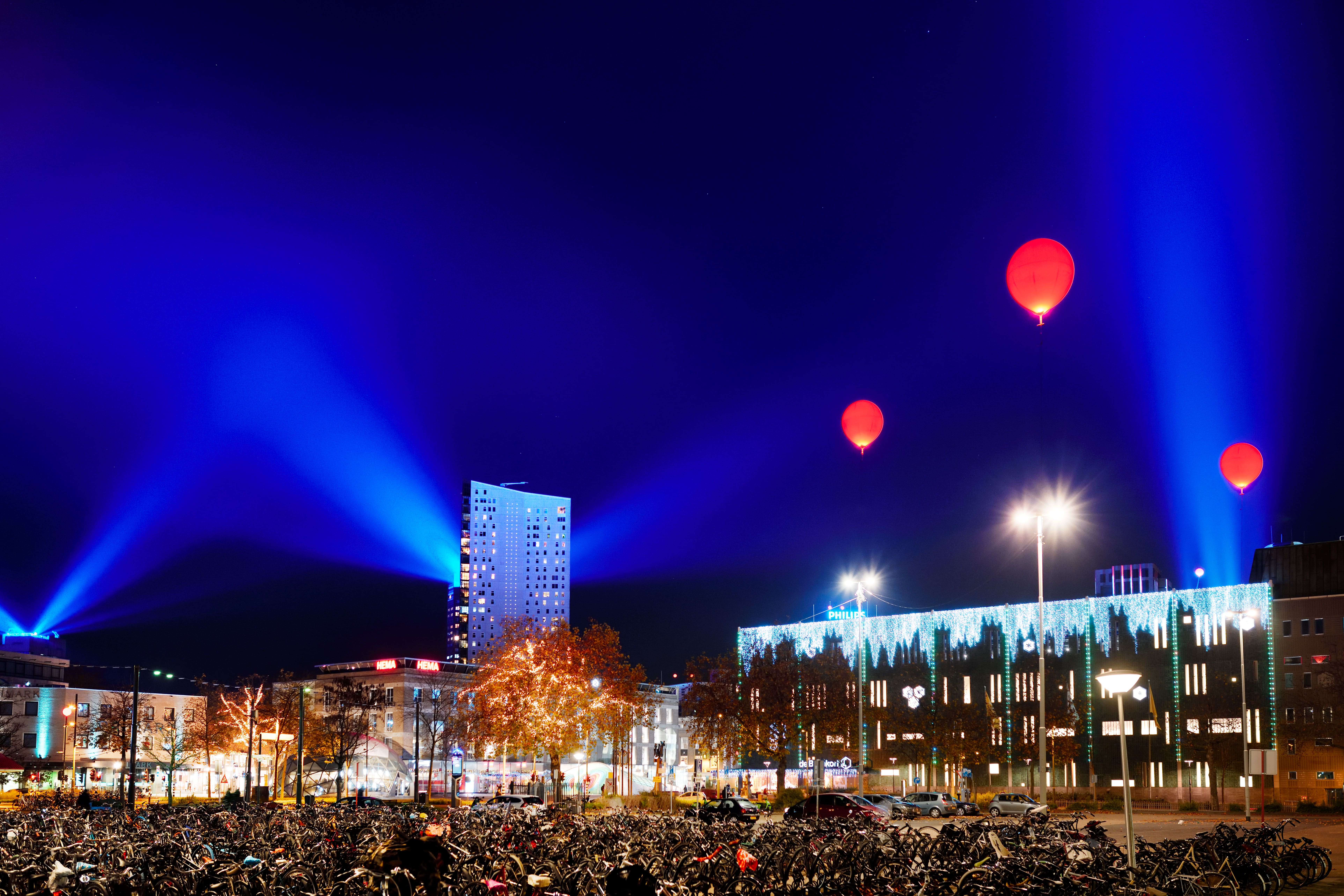 It is not surprising that the light artworks of Eindhoven artist Ivo Schoofs (Kinetic Humor) often deal with natural and physical phenomena. He graduated with a degree in physics and is still fascinated by things like movement, gravity, heat, and light. He explores these subjects through experiments, prototypes, kinetic art, moving light objects, and festival installations. He started doing this at a young age. As an artist, his goal is to show the beauty of science and technology in a way that everyone can understand. Schoofs has created several light artworks for GLOW Eindhoven in recent years. Some of them, such as Connecting the Dots, have become world famous.