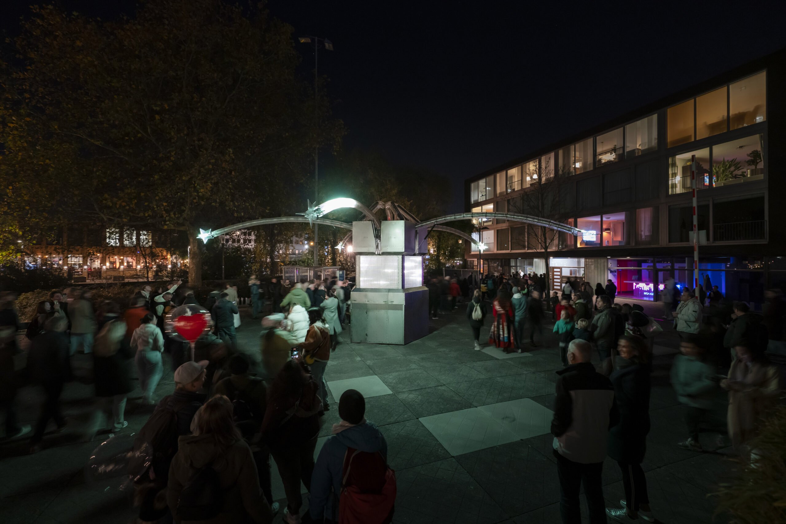 Echoes of Tomorrow is a light installation by the student team from the Delta excellence program at Fontys ICT. The team consists of twelve students: Bram Van Kempen, Antara Frisch, Bas Bakens, Jasper Demmers, Timo Enserink, Melissa Issaoun, Patryk Olejnik, Alexander Popov, Kaan Seçen, Thomas Verhappen, Jip Voss, Tom Heirman, Rens Krijl, Cristian Măgureanu,Andreea Chiliban, Bartosz Kaszuba and Tim Brouwers. They share a passion for ICT and innovation. The team is made up of software developers, designers, and hardware specialists.