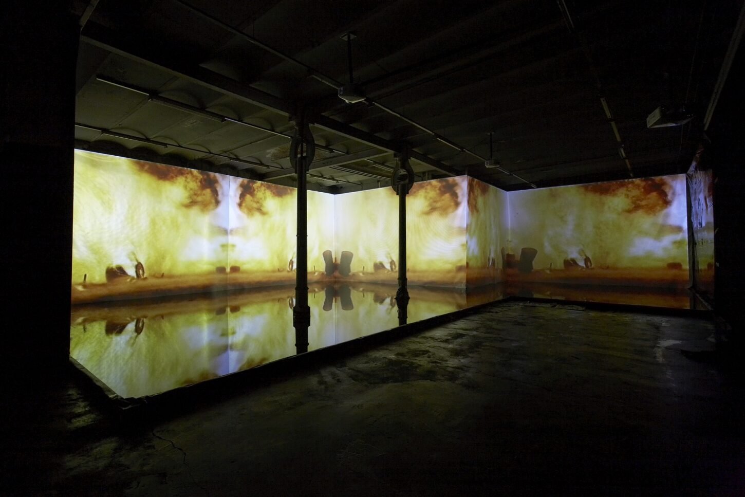 A forest is both an architectural space and a living organism. This concept is central to Forest II. Thirty fluorescent tubes hang vertically in a room, resembling trees in a forest. Visitors are invited to enter the installation. As they move through the space, they notice that the light intensity of the lamps fluctuates. Additionally, the sound, consisting of buzzing, creaking, and crackling, changes.