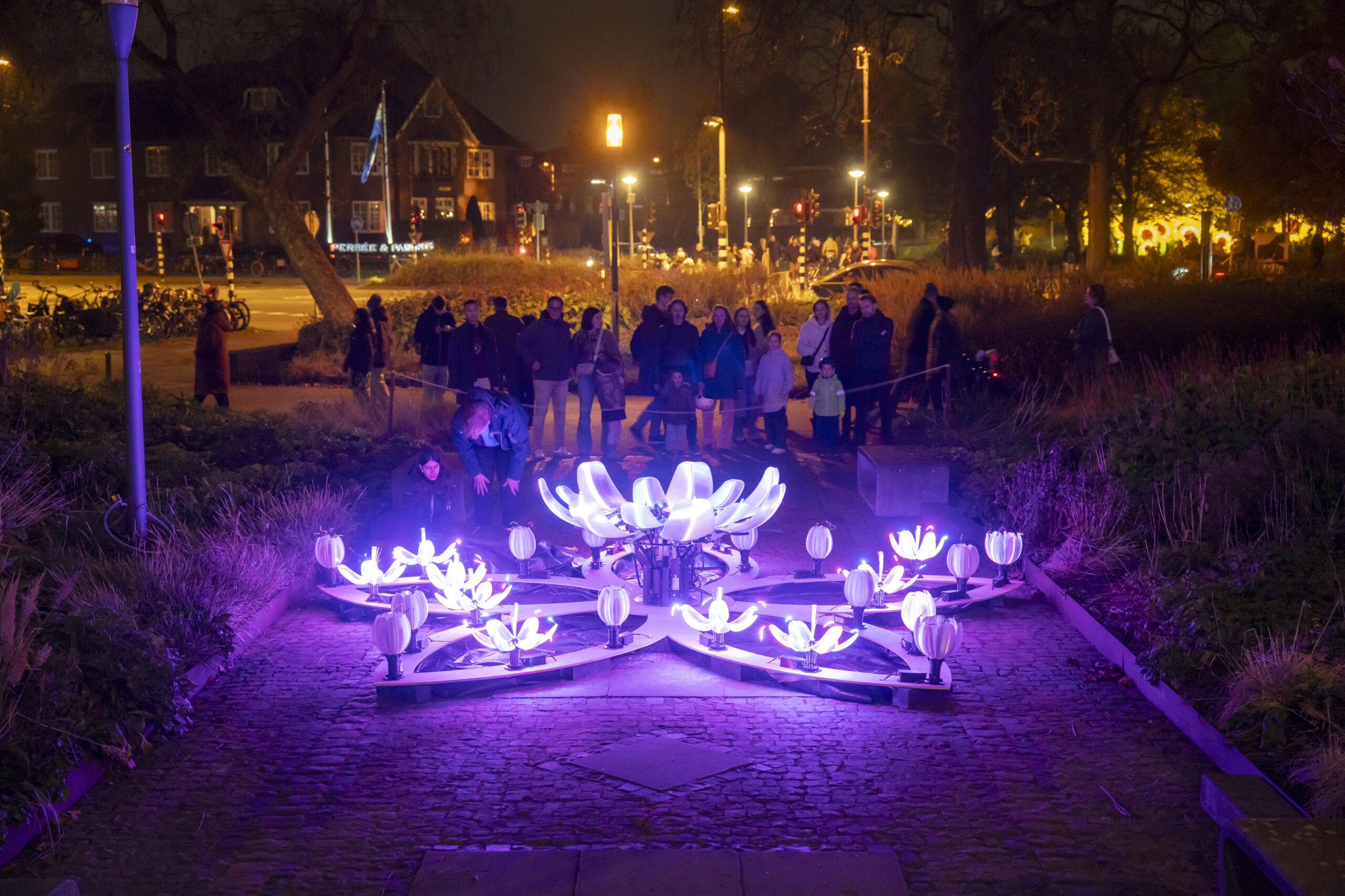 Garden of Flowers is a light installation created by students from Fontys who are following the BeCreative minor. During this minor, students learn how to combine creativity and technology. In this way, they work on various projects, such as GLOW. The first team came up with and developed the concept. A second team took over the concept and handled production and implementation. Garden of Flowers is therefore the result of a special collaboration between two successive student teams.