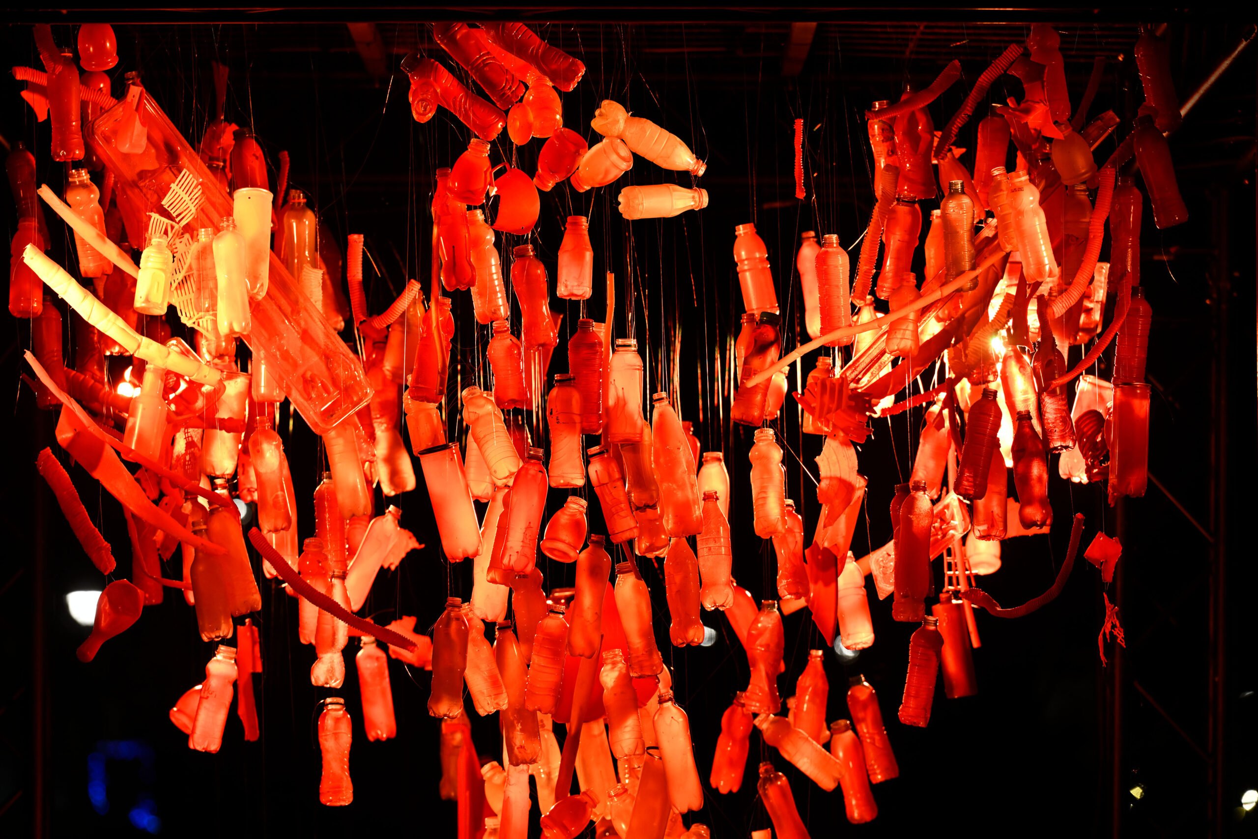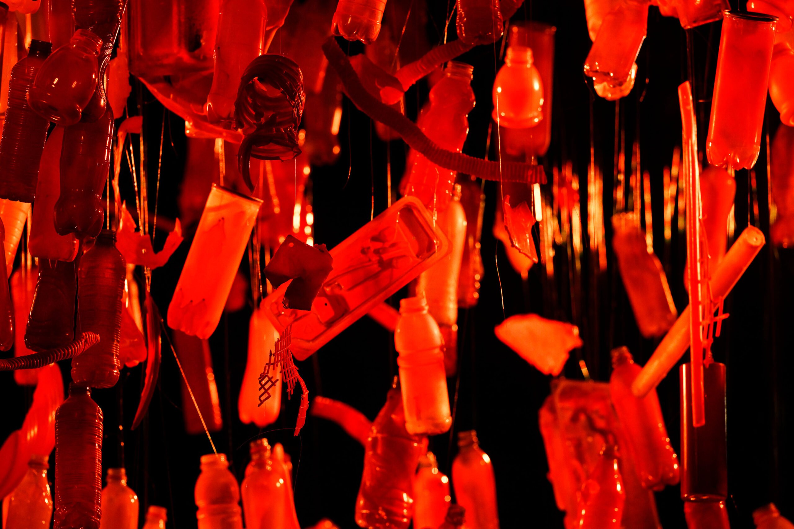 In their light installation, the students depict a phoenix made from plastic waste. But you’ll need to put in a bit of effort to see it. Walk around the cubic frame. At first, you’ll only see pieces of plastic seemingly hanging at random. Until you find the right angle. There it is—the phoenix, in full glory. Three-dimensional and warmly lit by LED lights. As you move on, the phoenix disappears again, leaving you looking at nothing more than plastic waste hanging on a frame.