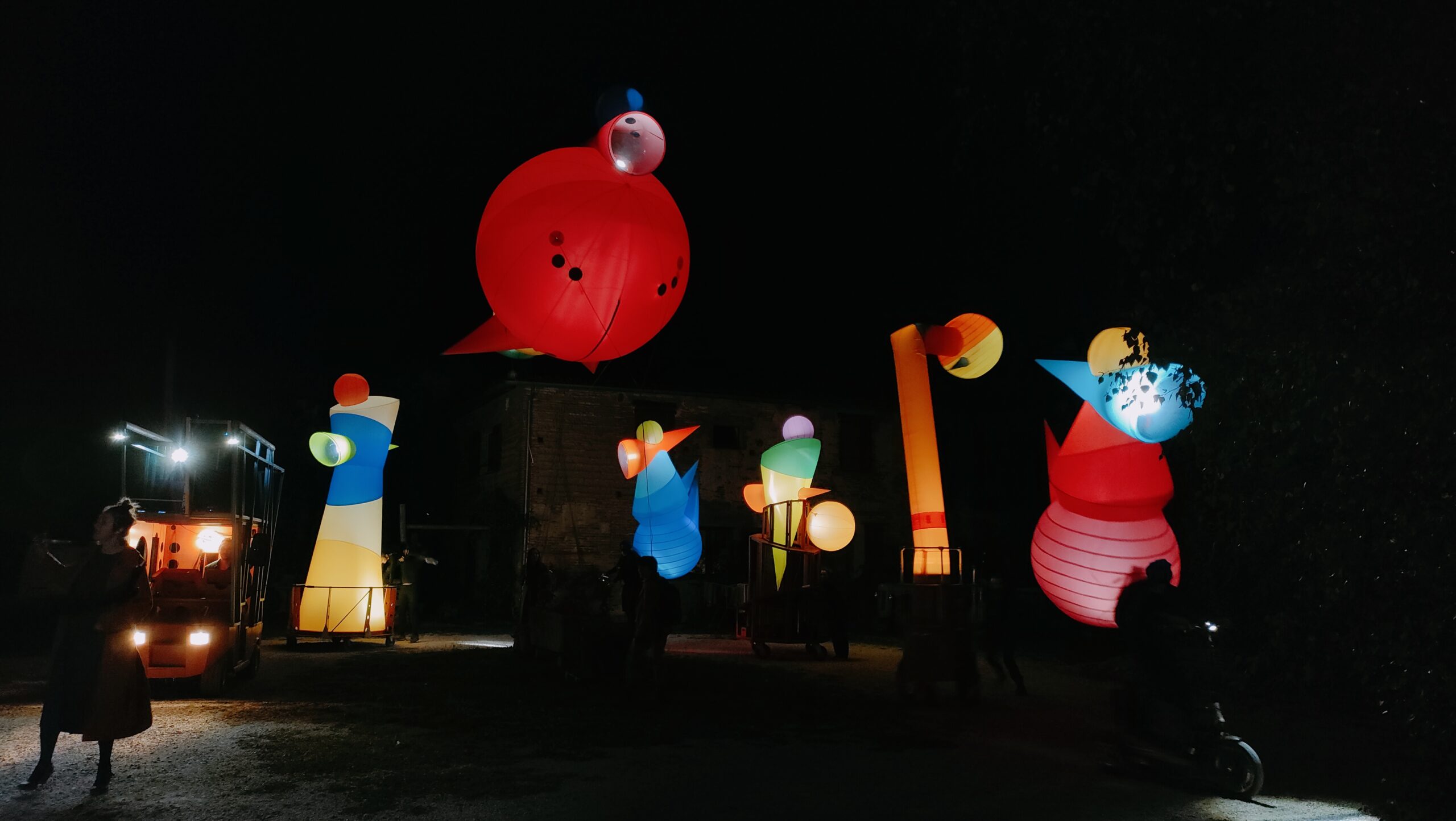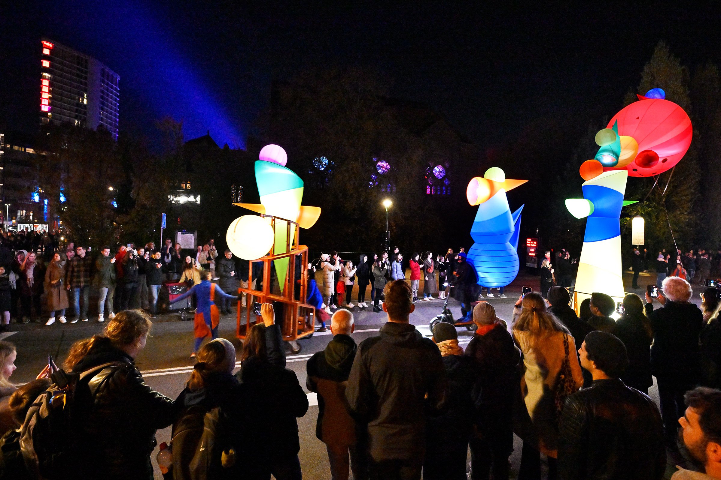 The street theatre group Picto Facto comprises around 15 artists, was founded thirty years ago and hasn’t stopped changing and evolving ever since. The artists who describe themselves as ‘image blowers’ create inflatable structures, and are inspired by everyday objects, cartoons and famous works of art. Their pictographic language consists of bright colours and simple geometric shapes that are reminiscent of childhood and evoke a poetic fantasy world with which any audience can identify. The company was born in 1992 and was built around the desire to create rhythmic images for the street. To tell stories about the world while walking between nonsense and fantasy, with one goal: sharing moments. Especially for Eindhoven, they have integrated the Dutch language into their songs and also written many scenes with the city in mind.
