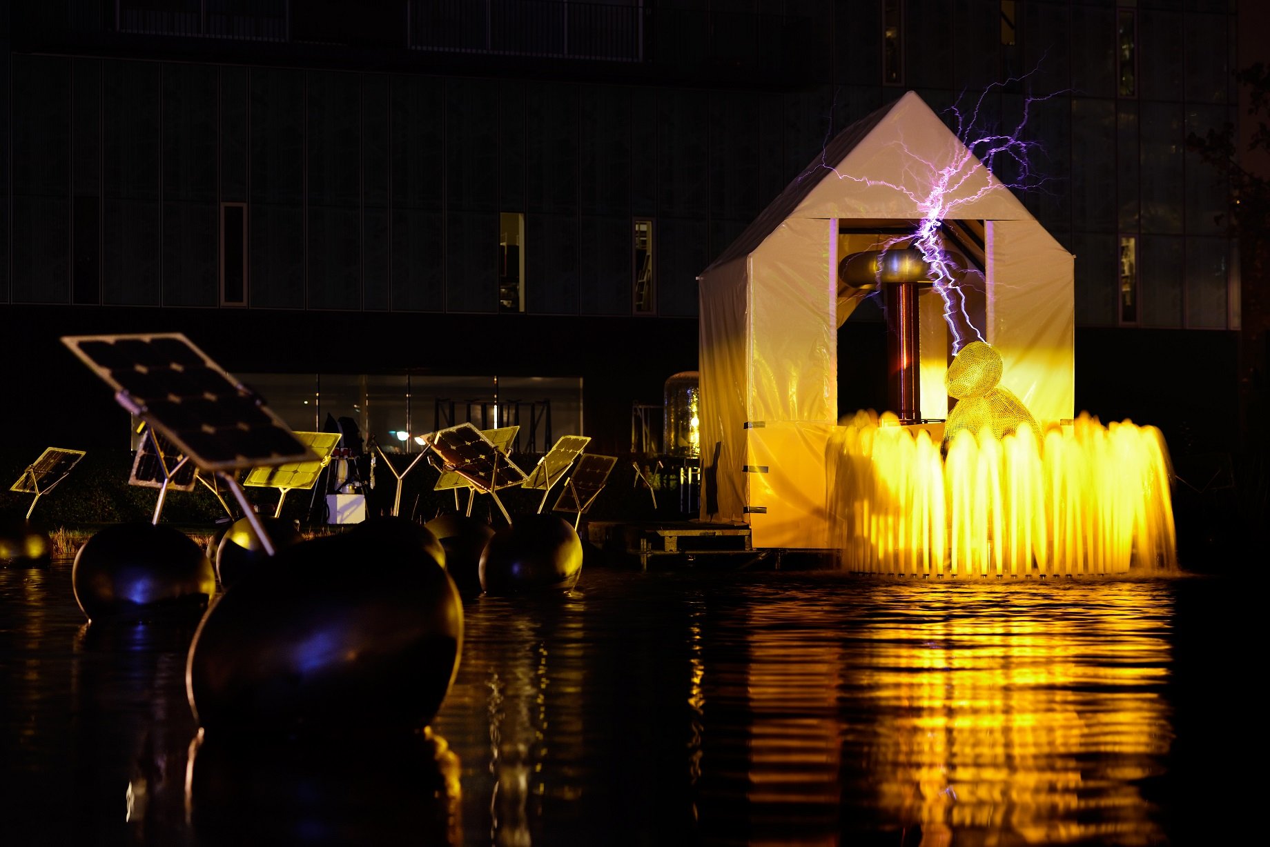 Groups EES and EPG of the faculties EE and TN at the Eindhoven University of Technology, the Institute for Complex Molecular Systems ICMS, the Equipment Prototype Center of the Eindhoven University of Technology, artist Alex Vermeulen and composer Eddy de Clercq. “Sound of Lightning”, a company of Roy Piepers, student TU/e.