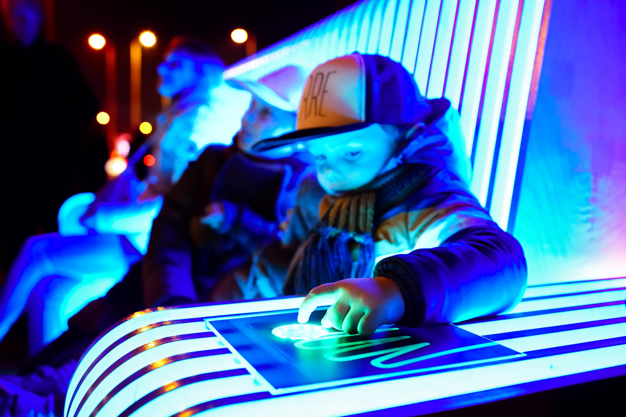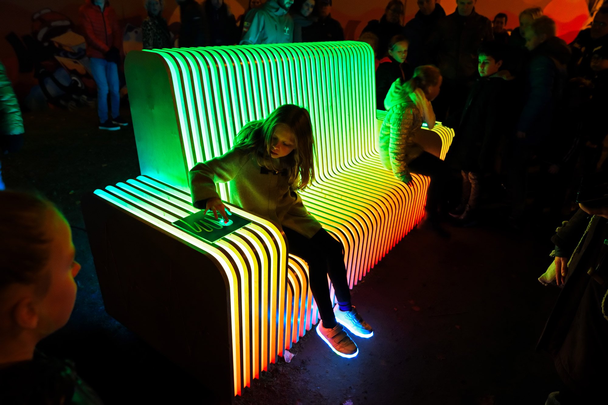 Your heart is the engine of your body. It pumps your blood around and makes it possible for you to move, breathe, think, and live. But can your heartbeat set even more things in motion? The answer is: yes! This light artwork is a beautiful example of that. Take a seat on the bench and transform your heartbeat into dancing light. From a pounding in your chest to a feast for the eyes!