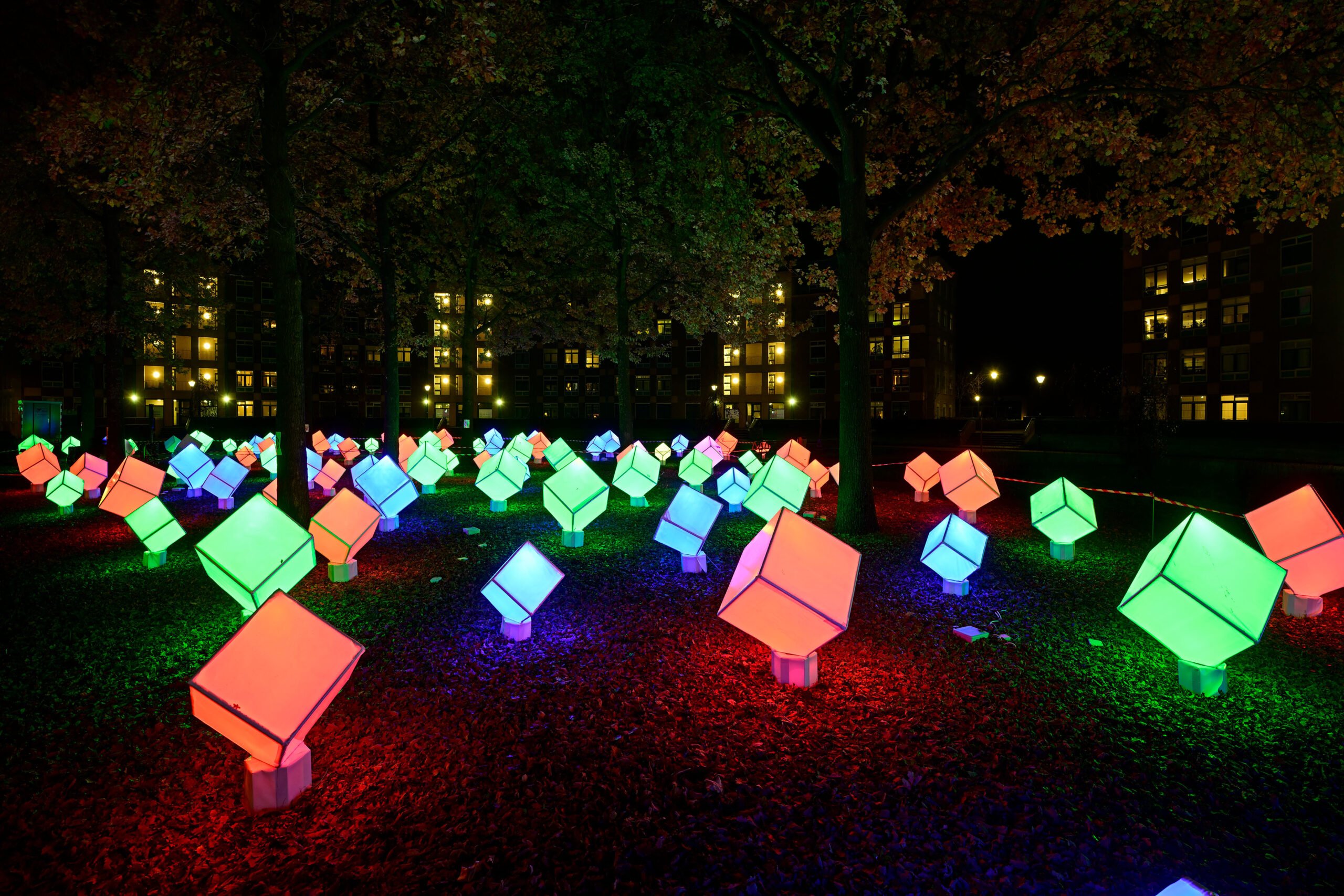 The jury evaluated all projects on GLOW’s core values: accessibility, innovation, connection and wow-factor. The Jury Award goes to Kubus Bos, an ode to Helmond’s iconic cube houses. Students from Praktijkcollege Helmond, working together with regional partners, created one hundred illuminated cubes that pulsed in sync with the music. A valuable and ambitious learning experience with a beautiful result.