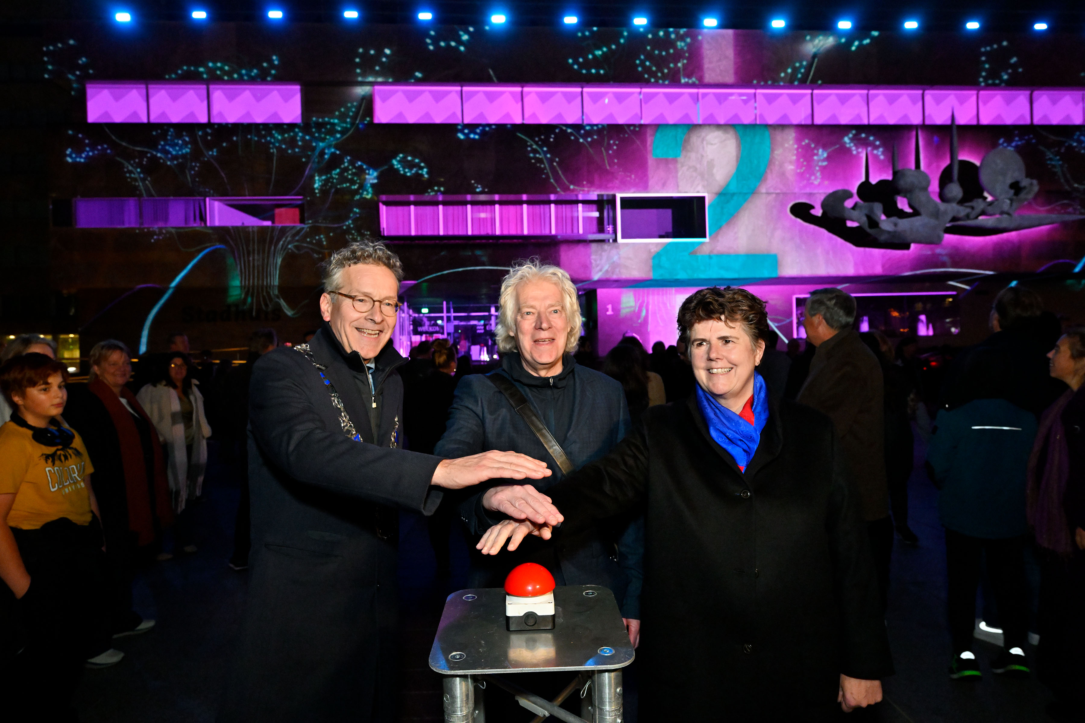 Opening GLOW - Jeroen Dijsselbloem (burgemeester), Ina Adema (Commissaris van de Koning) en Ronald Ramakers (directeur)