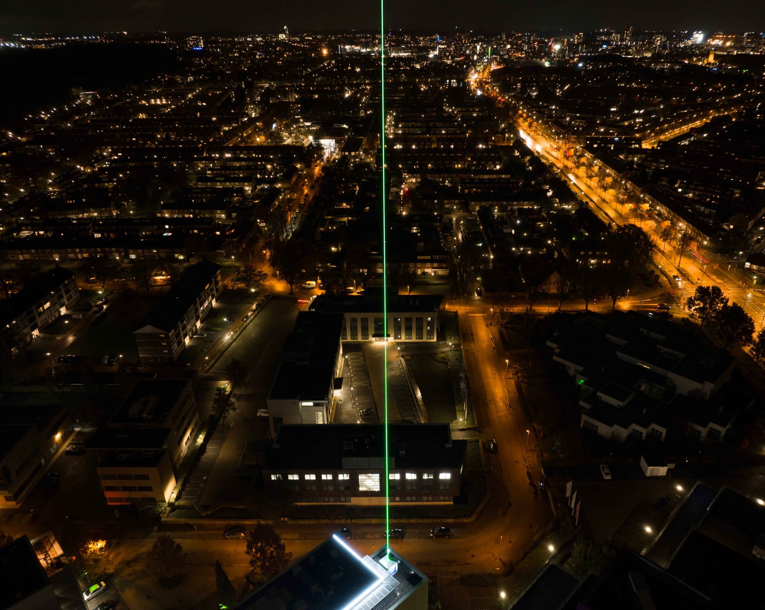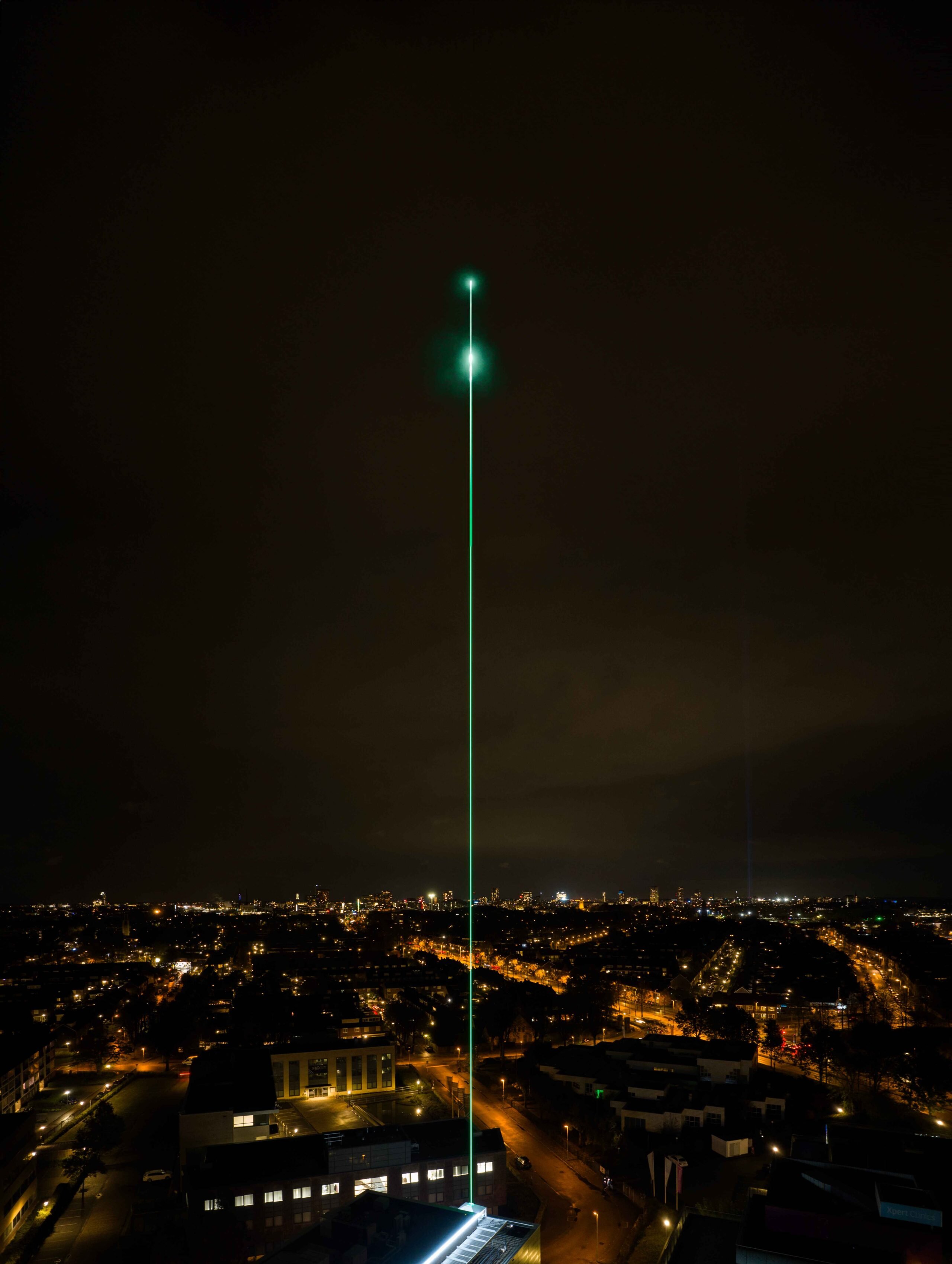 Op een hoogte van tien kilometer blijft de laserstraal duidelijk en scherp. Daarna begint hij te verzwakken naarmate de deeltjes in de lucht afnemen.