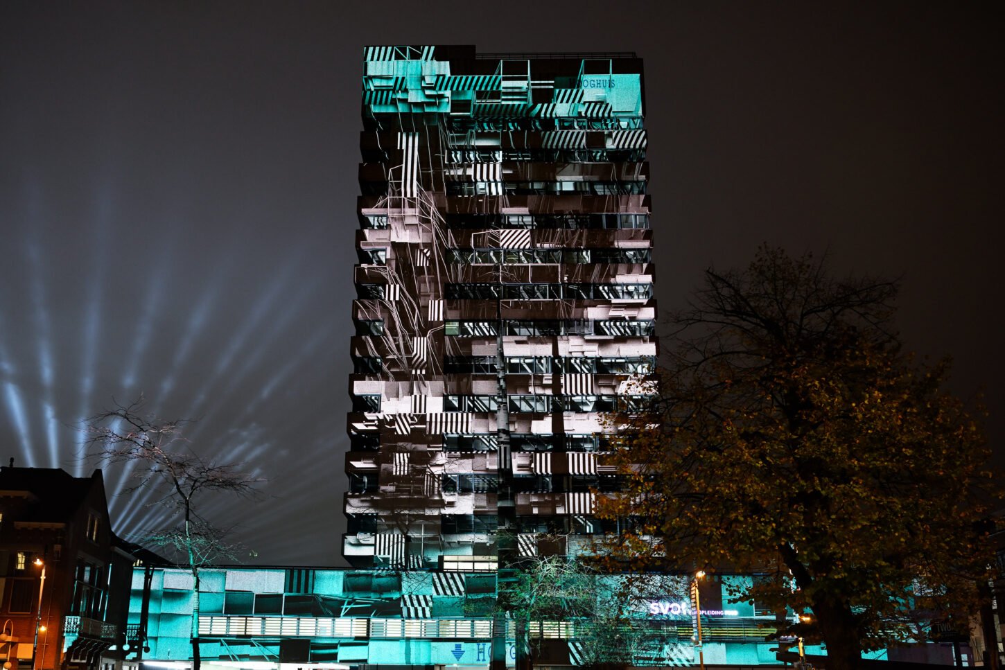 ls jarenlange partner van GLOW maakt ASML met medewerkers een kunstwerk voor het lichtfestival. Voortbouwend op het succes van vorig jaar nodigde ASML opnieuw een lokale organisatie uit om samen te werken aan een GLOW-project – deze keer met de naburige zorginstellingen Máxima MC en het Catherina Ziekenhuis als partners. Ze creëerden deze installatie in Eindhoven samen met Marcello Arosio van het kunstenaarscollectief Onda Studio, die het concept en systeem ontwikkelde.