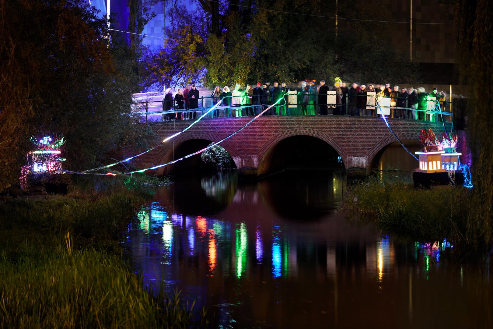 “We begonnen met brainstormen voor deze GLOW editie na het horen van het thema van dit jaar ‘Living Colors’. We wisten al snel dat we een samensmelting van technologie en natuur wilden neerzetten. Ook willen we laten zien dat deze twee concepten samen gaan, wat veel mensen niet verwachten. Het resultaat van deze brainstorm was ‘Floral Flow’. De installatie nodigt mensen uit om de enorme bloemen in de Dommel te voeden. Wanneer zij water en licht omhoog pompen, gaan de bloemen voor hen open. We gebruiken het water van de Dommel en het licht om een speciaal effect en belevenis te creëren, geïnspireerd op de natuur’.