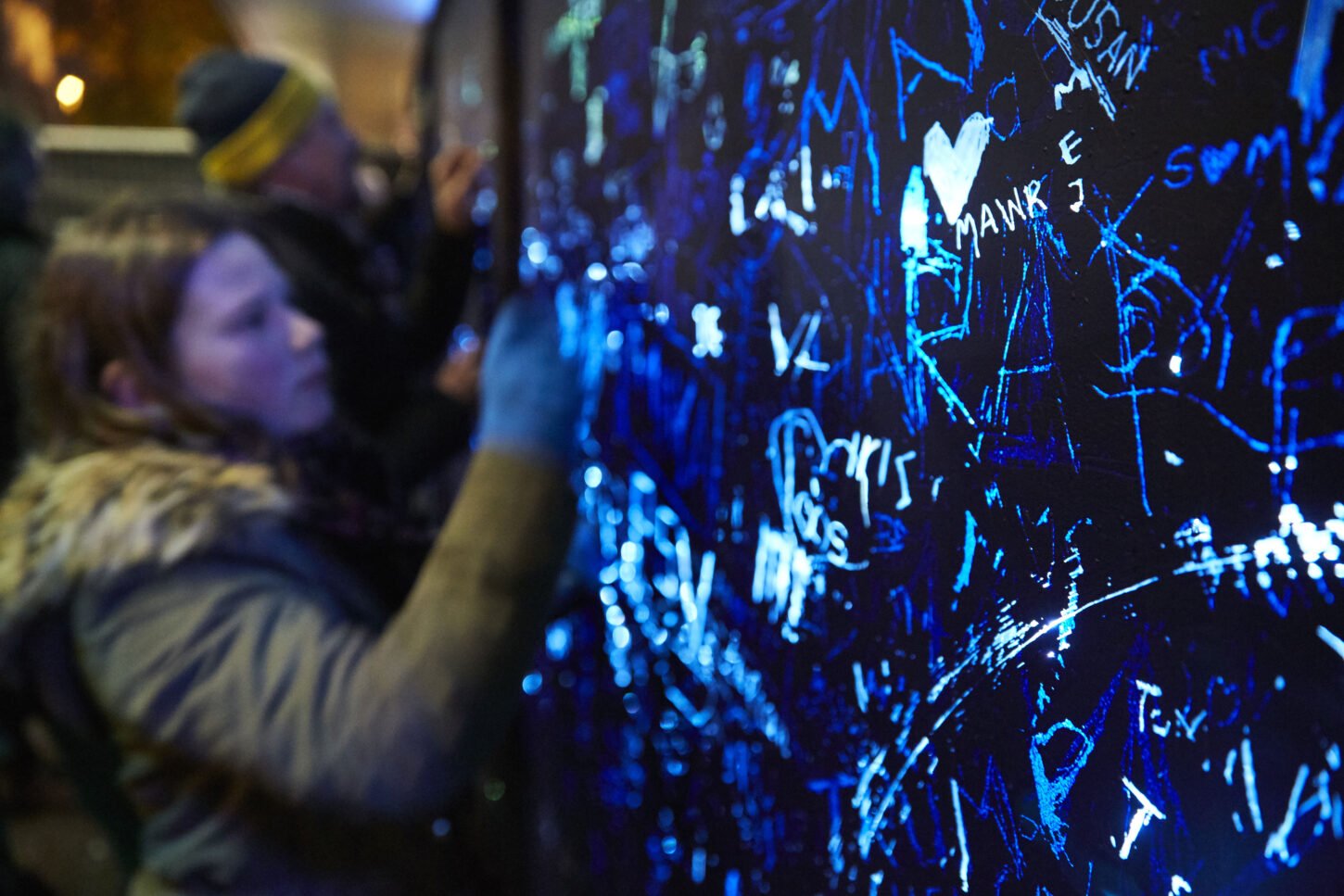De complete opstelling, ontwikkeld door studenten Technisch Natuurkunde en Engineering aan Fontys Hogescholen, bestaat uit 10 onderdelen die met LED strips aan elkaar verbonden zijn. De opstelling wordt automatisch geregeld en zal in een loop spelen.