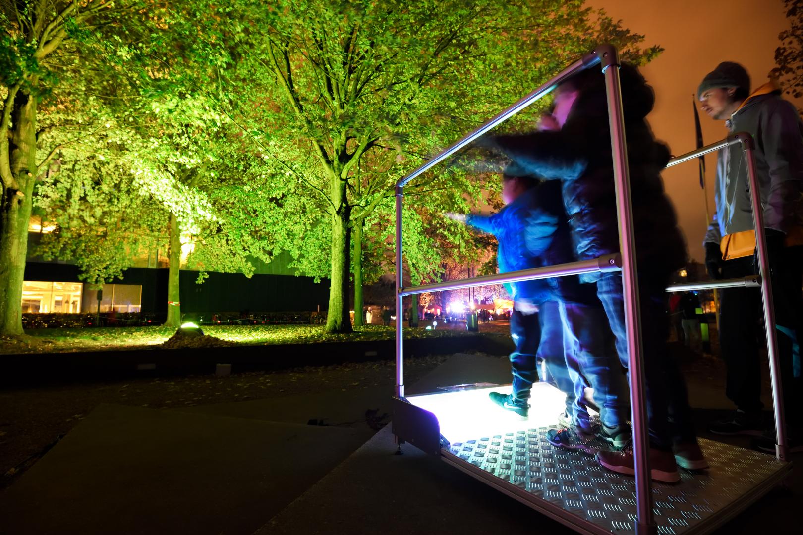TU/e studenten hebben speciaal voor GLOW een leuke en innovatieve bediening voor dit systeem ontwikkeld: je kunt nu via handgebaren de omgeving voorzien van licht in alle kleuren en patronen. Alsof je met je hand licht schetst. Het lichtschets systeem staat opgesteld op het landschapskunstwerk van Ad Dekker en Jean Leering. Wees welkom om plaats te nemen op één van de lichtschets platforms en transformeer dit deel van de campus tot een lichtkunstwerk, gemaakt door en voor GLOW bezoekers.