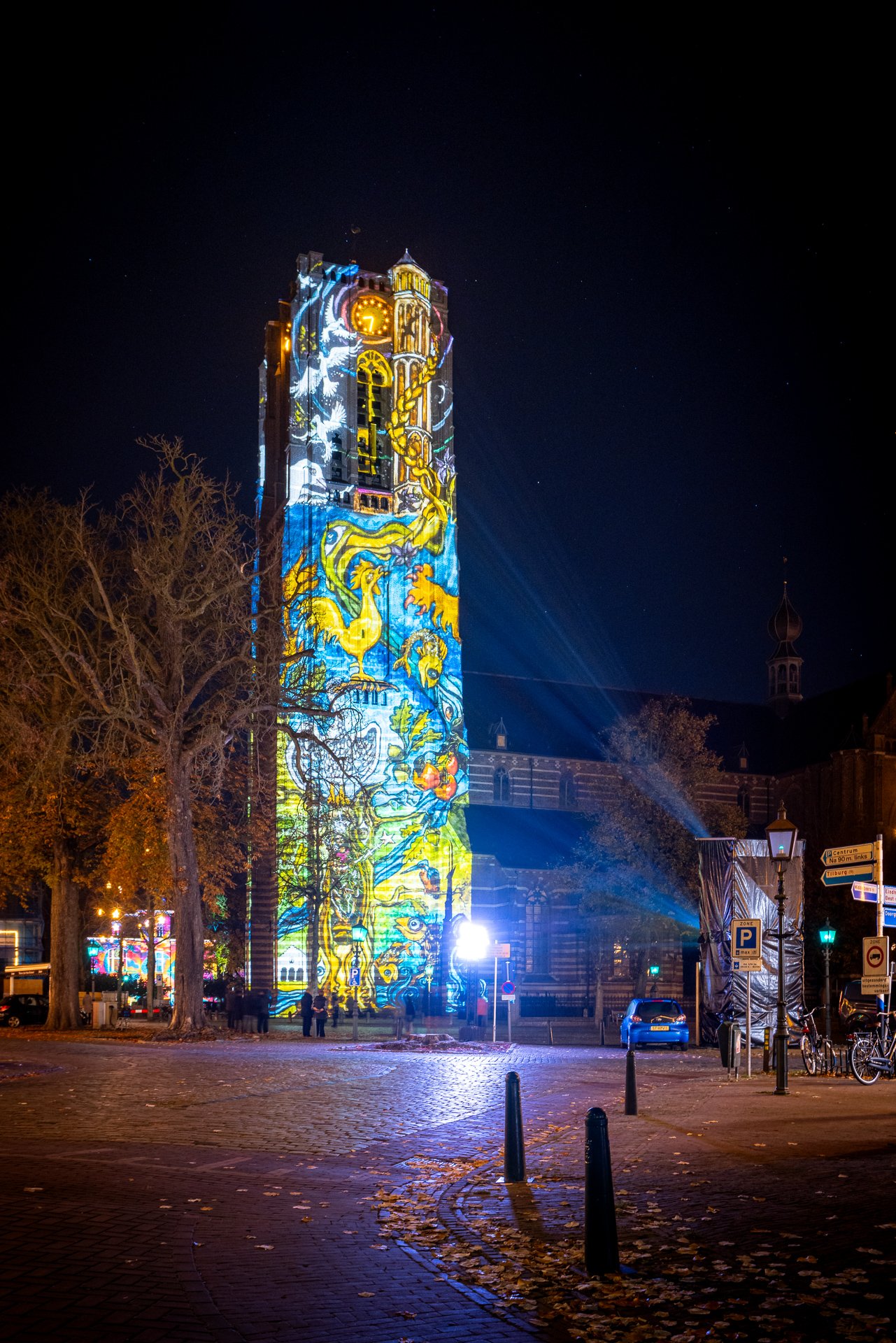 Ze zijn al van ver te zien: de sprookjesachtige, kleurrijke figuren die tijdens GLOW de Oirschotse basiliek toren overnemen. De wervelende projectie is een aanstekelijke potpourri van verbeelding, historie, mythe, locatiegebonden elementen en een droomwereld. Je kunt er lang naar kijken, je er zelfs een beetje in verliezen. Je droomt weg, ontdekt nieuwe details en zoomt weer uit. Voor even ben je alleen maar hier, om te kijken. Tot iemand op je schouder tikt om verder te gaan. Geniet ervan!