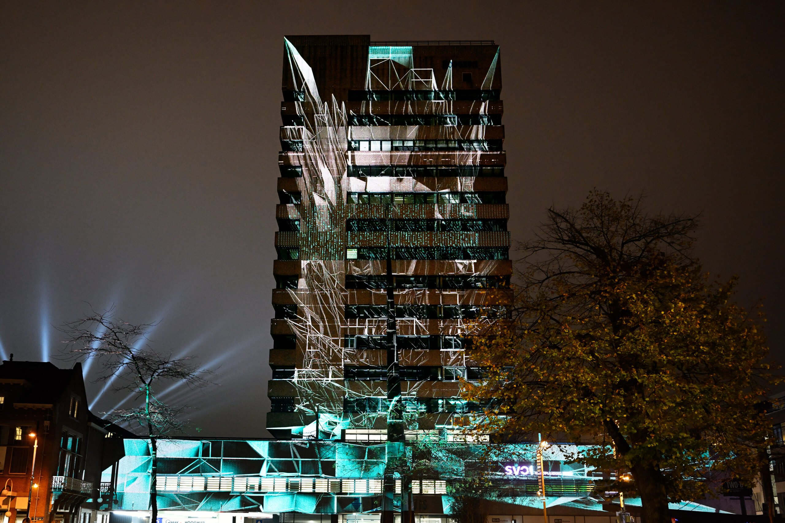 Het is een blik in de nabije toekomst van Eindhoven: het EDGE gebouw markeert een grotere ontwikkeling in deze steeds drukker wordende stad. Het gebied rondom het centraal station verandert de komende jaren onherroepelijk, en het Duitse lichtcollectief Ruestungsschmie.de tekent daar alvast de contouren van uit. Dit specifieke gebouw zien zij als een grens tussen de drukke stad en de reuring van het station aan de ene kant, en de rust en ruimte van de Dommel aan de andere kant. Het is een mooie metafoor voor de stad, waar de natuur en de mens steeds nieuwe manieren moeten vinden om met elkaar samen te leven.